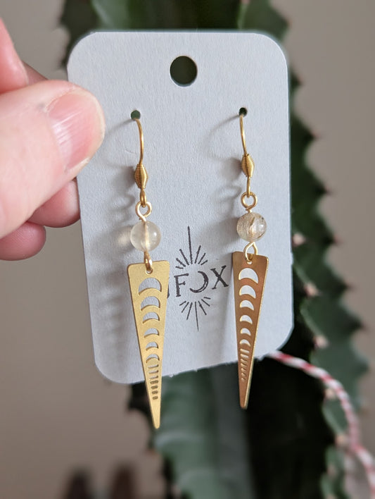 Watermelon Tourmaline Moon Phase Gold Earrings (Various Colors Available)