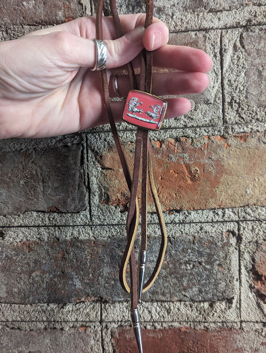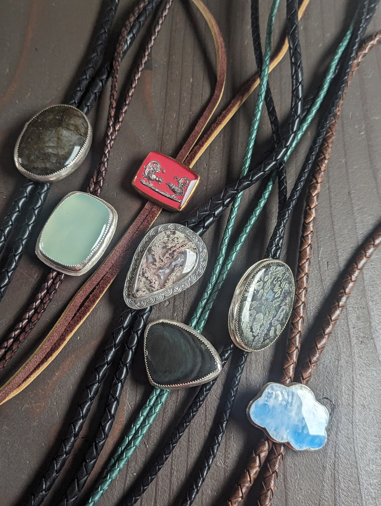 Adjustable slide bolo ties used ng genuine leather and all hand fabrication by JFOX Jewelry