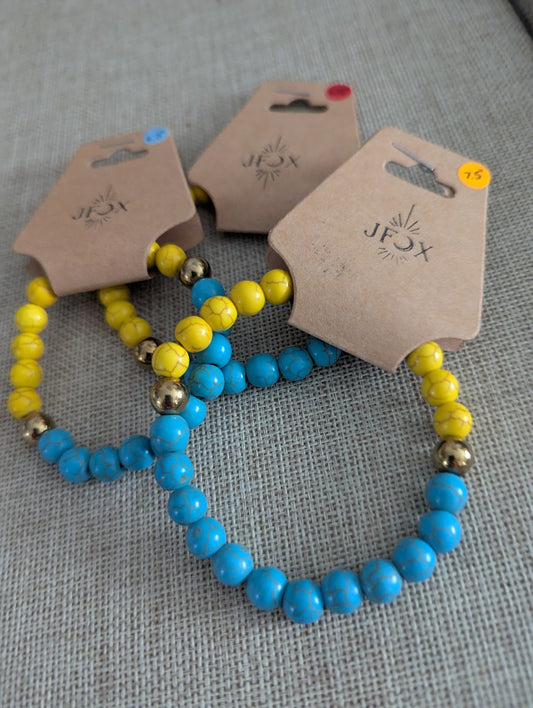 Turquoise and Yellow Howlite and Gold Howlite Stretch Bracelet (Various Sizes Available)