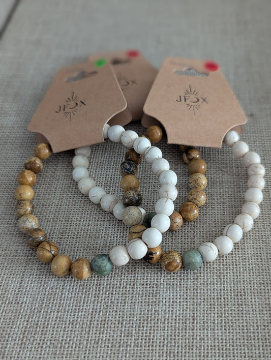Picture Jasper, Howlite and Jade Stretch Bracelet (Various Sizes Available)