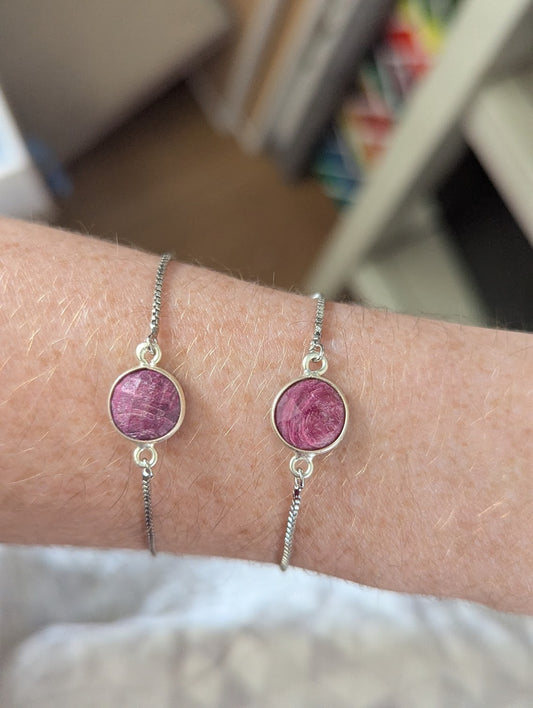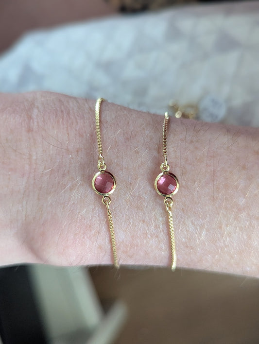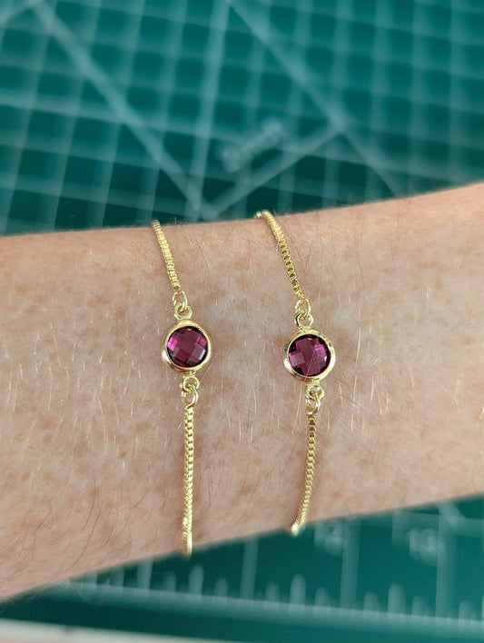 Dark Pink Small Faceted Round Gold Slider Bracelet