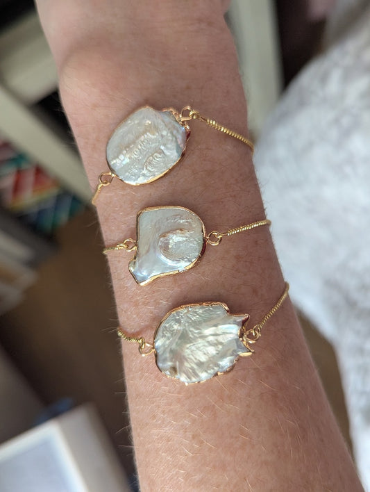 Large Freshwater Pearl Coin Gold Slider Bracelet