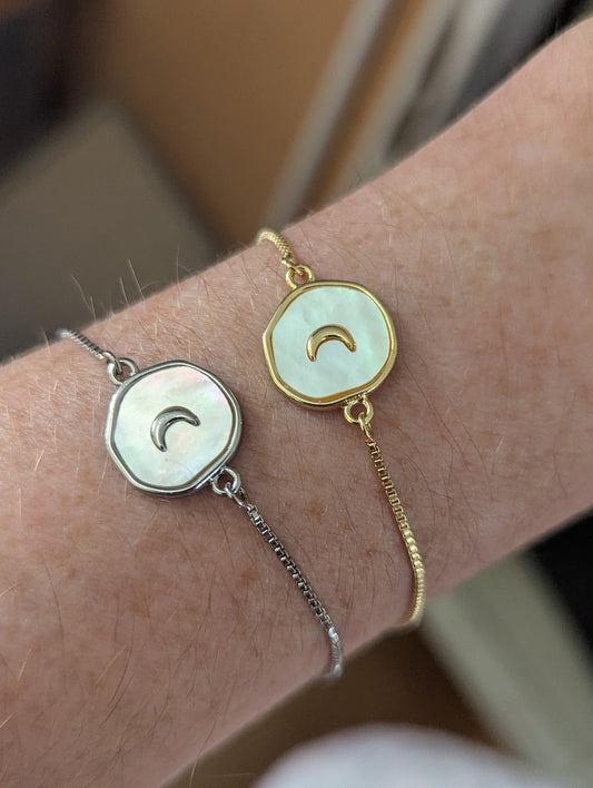 Freshwater Pearl Crescent Moon Slider Bracelet (Silver or Gold)