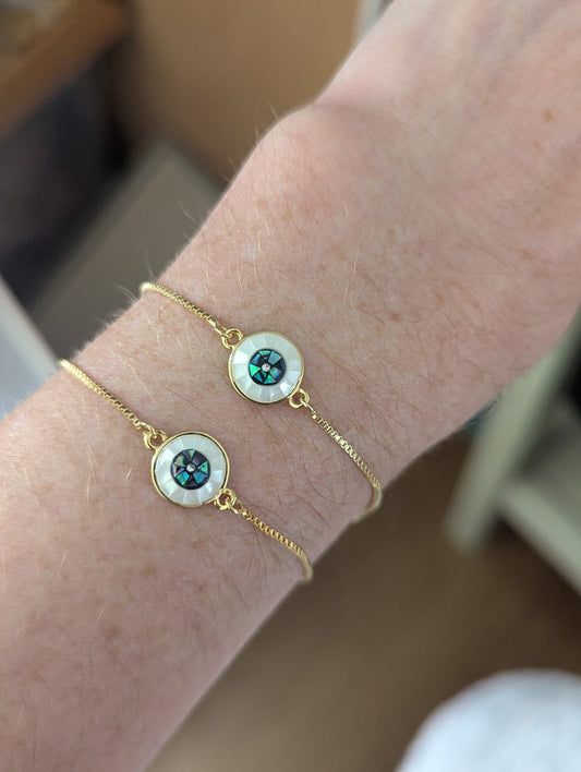 Mother of Pearl and Abalone Evil Eye Gold Slider Bracelet