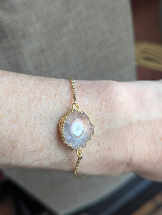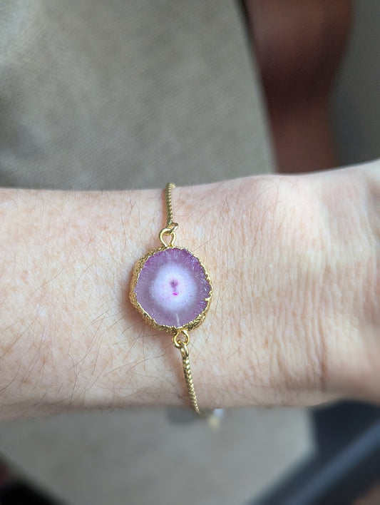 Purple Agate Slice Gold Slider Bracelet