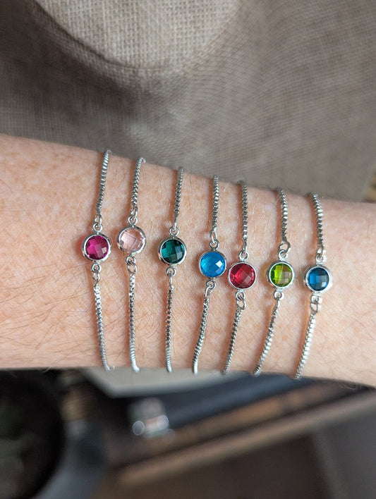 Small Faceted Gemstone Silver Slider Bracelet (Various Colors Available)