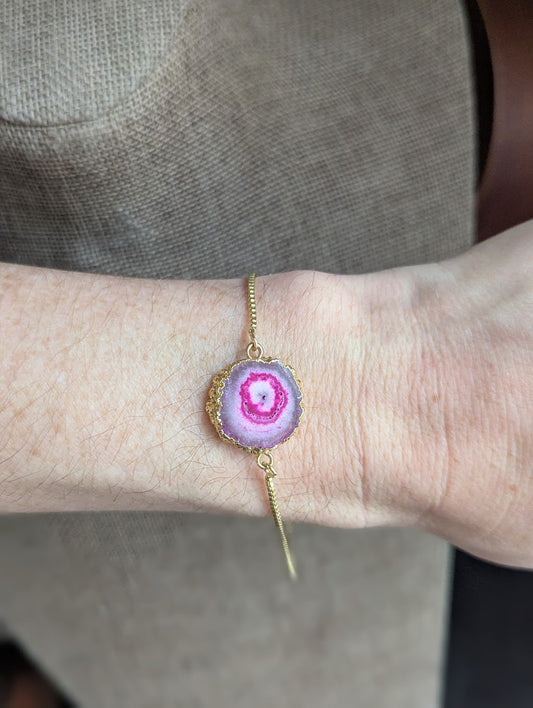 Hot Pink Agate Slice Gold Slider Bracelet