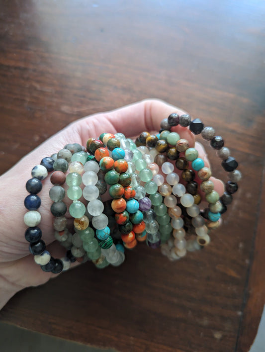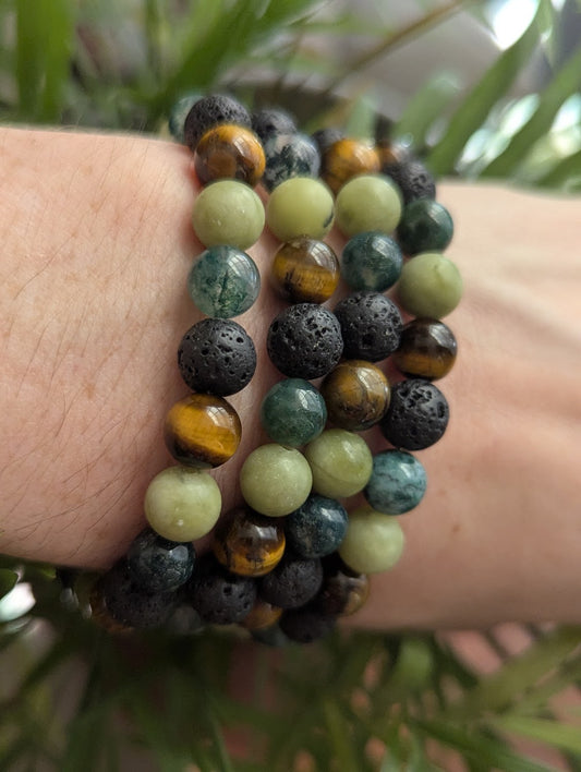 Moss Agate, Jade, Tigers Eye, Lava Bracelet (Various Sizes Available)