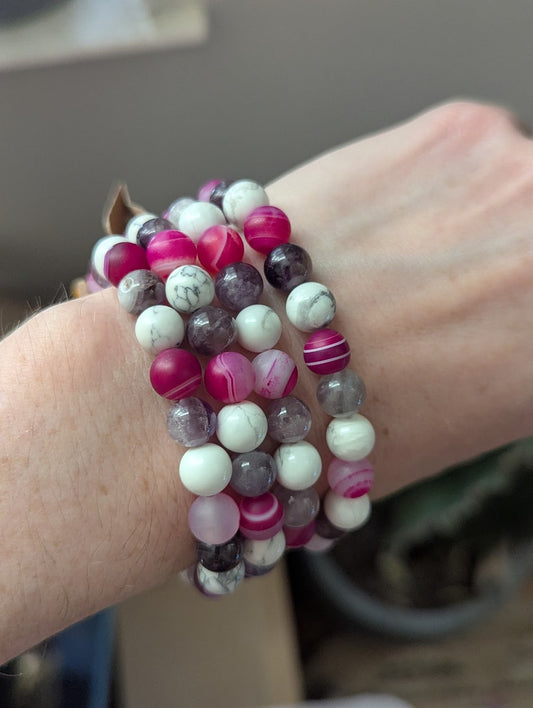 Pink Agate, Howlite, Amethyst Bracelet (Various Sizes Available)