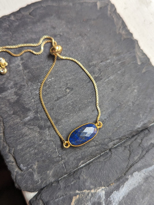Lapis Lazuli Adjustable Gold Slider Bracelet
