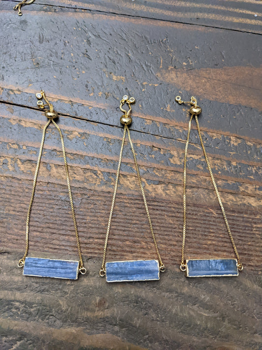 Blue Kyanite Adjustable Slide Bracelet (Silver or Gold)