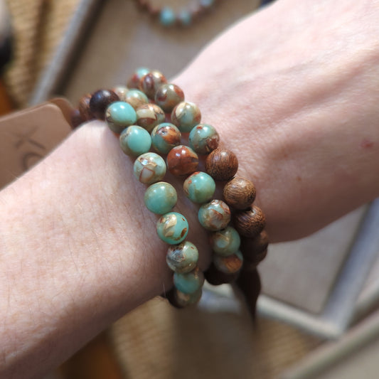 Aqua Terra Jasper and Wood Bracelet (Various Sizes Available)