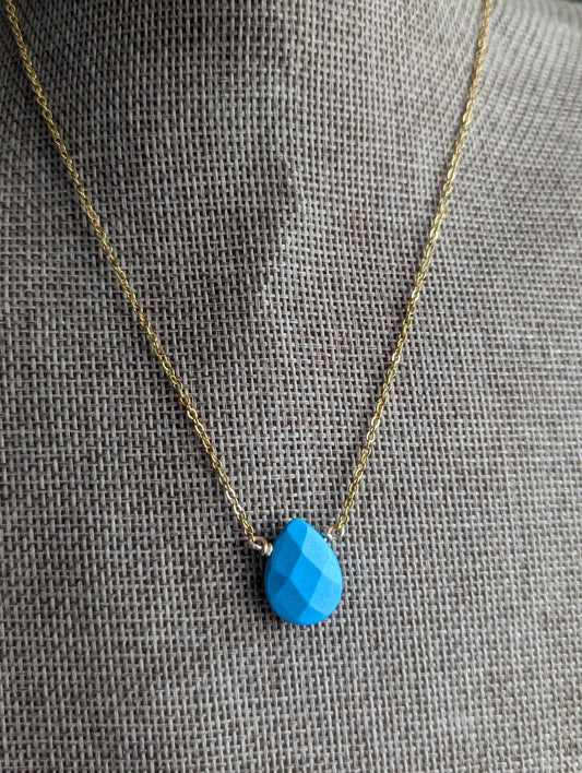 Faceted Turquoise Howlite Tear Drop Necklace (Silver or Gold)