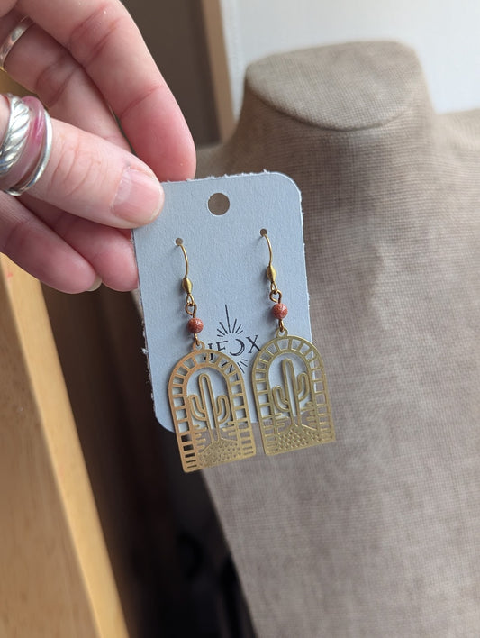 Amazonite Oval Trio Brass Hoop Earrings (Various Options Available)