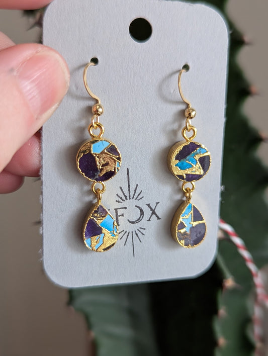 Blue and Turquoise Gold Mosaic Duo Earrings