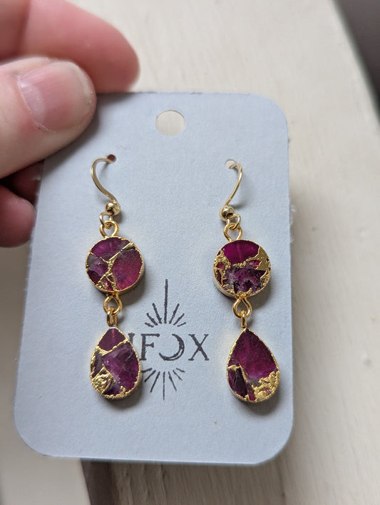 Strawberry Quartz Hexagon 14kGF Hammered Loop Earrings