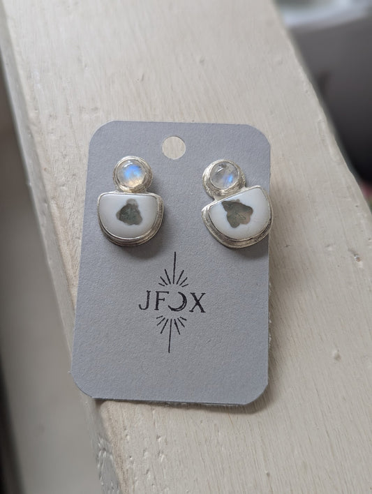 Larvikite Labradorite and Moonstone Sterling Silver Posts