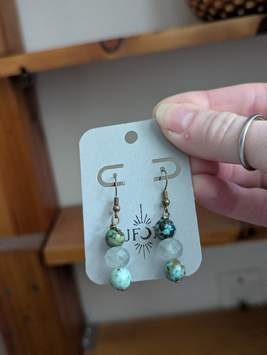 Palm Frond Turquoise Earrings (Silver or Gold)