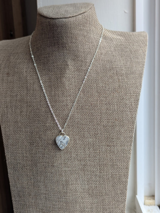 Pink Zebra Jasper Heart and Bloodstone Silver Necklace