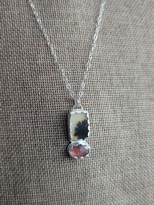 Dendritic Agate and Strawberry Quartz Silver Duo Necklace