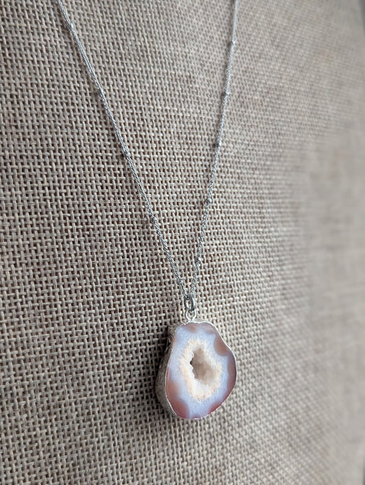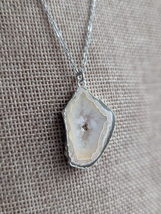 Brown and White Agate Slice Silver Necklace