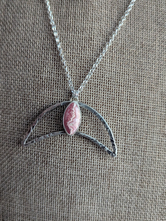 Hammered Crescent Rhodocrosite Silver Necklace
