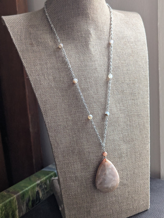 Fossilized Coral and Agate Beaded SIlver Necklace
