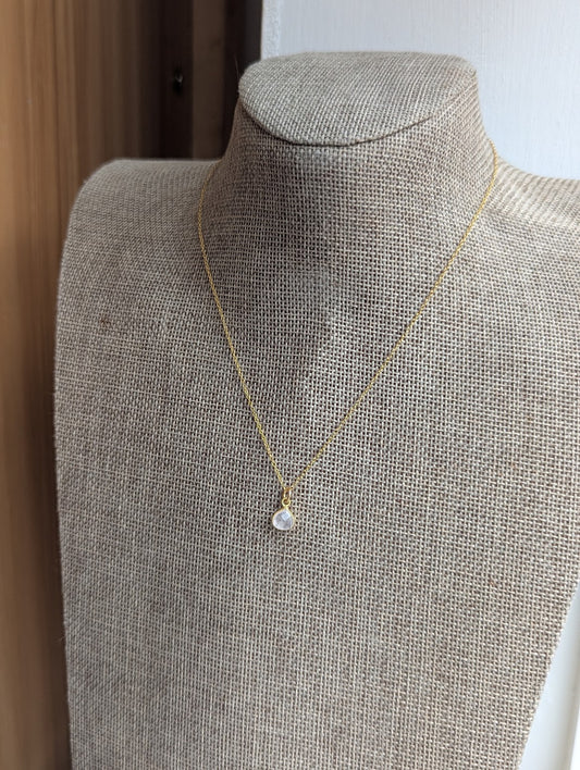 Dainty Rose Quartz Tear Drop 14kGF Necklace