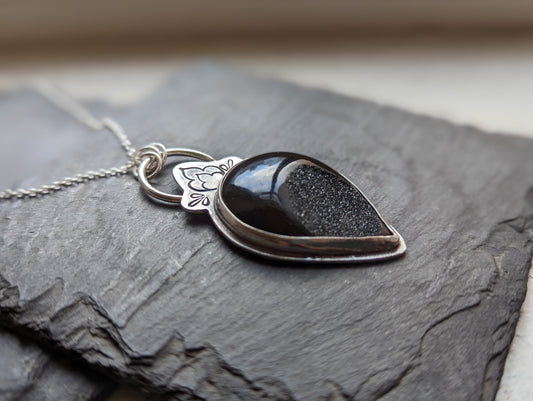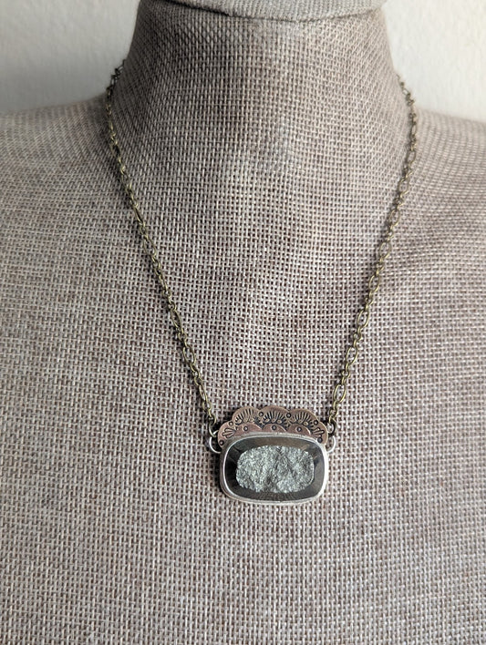 Rectangle Dendritic Agate Crescent Moon Sterling Necklace