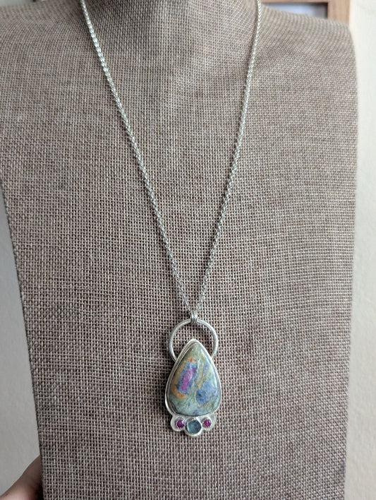 Ruby Fuchsite, Pink Sapphire and Green Kyanite Full Circle Sterling Silver Necklace