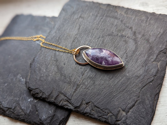 Lepidolite Marquise Mixed Metal 14kGF and Sterling Silver Necklace