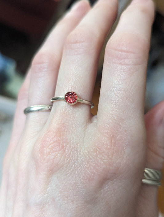 Vintage Glass Carved Flower Ring (various sizes available) MTO