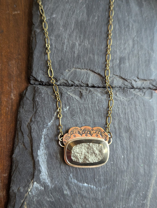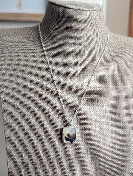 Rectangle Dendritic Agate Crescent Moon Sterling Necklace