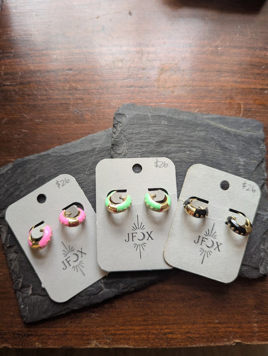 Aros Huggie dorados esmaltados de 14 mm (varios colores disponibles)