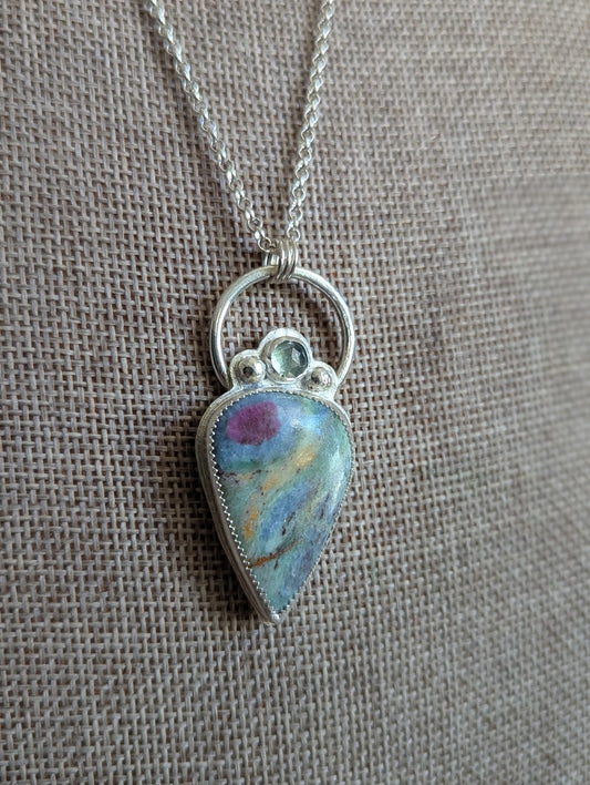 Collar de plata de ley con círculo completo de fucsita rubí y cianita verde