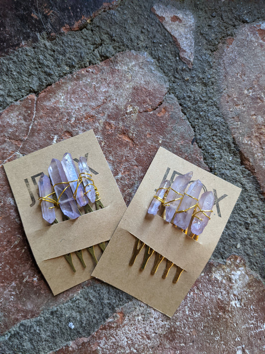 Peineta pequeña de cristal de cuarzo morado