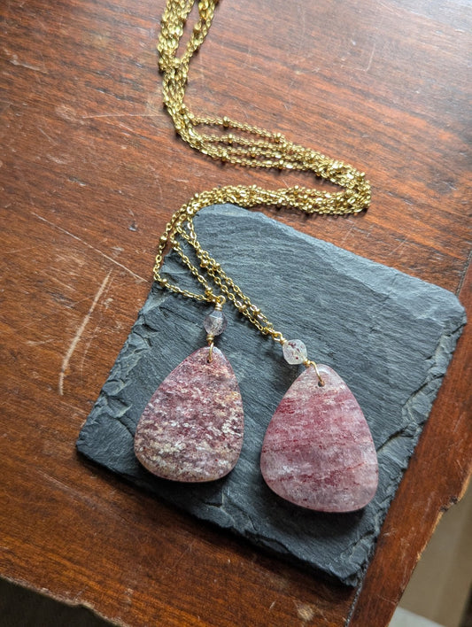 Pendientes de Sol, Luna y Aventurina Rosa - Latón