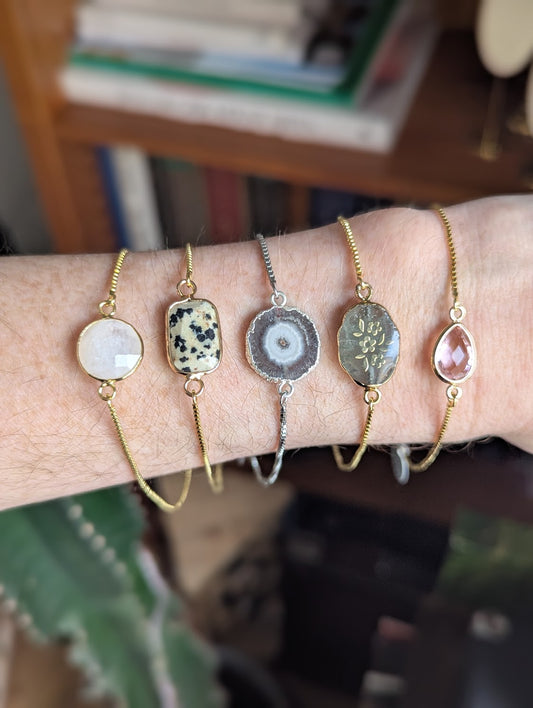 Dalmatian Jasper Rectangle Gold Slider Bracelet