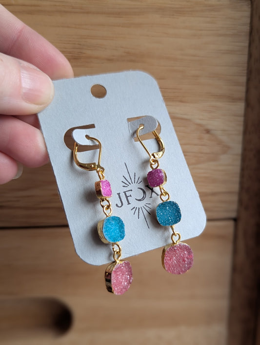 Pink, Blue, Red Druzy Trio Gold Hoop Earrings