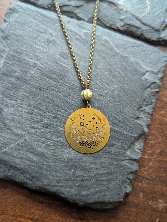 Pendientes colgantes de latón con melón, color miel y turquesa