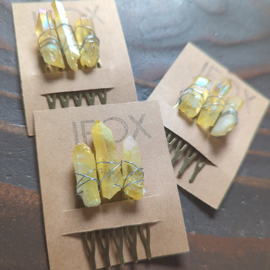 Peineta pequeña de cristal de cuarzo amarillo