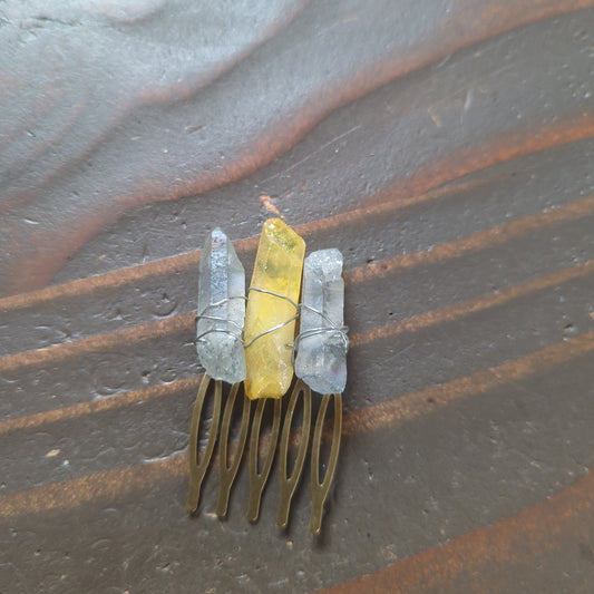 Peineta pequeña de cristal de cuarzo azul/amarillo