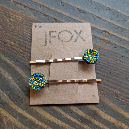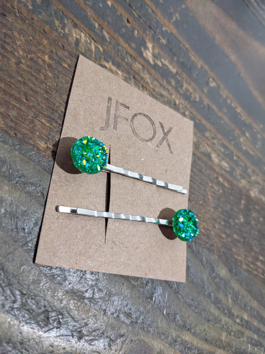 Green and Blue Glitter Bobby Pins
