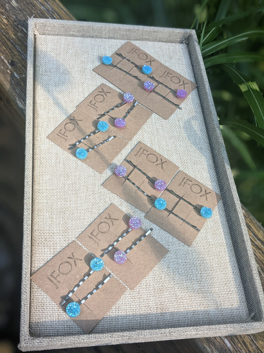 Juego de 2 horquillas con drusa azul eléctrico