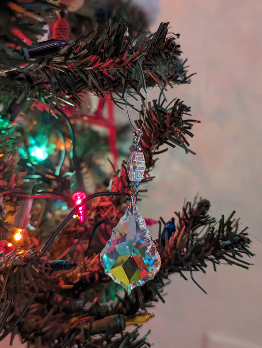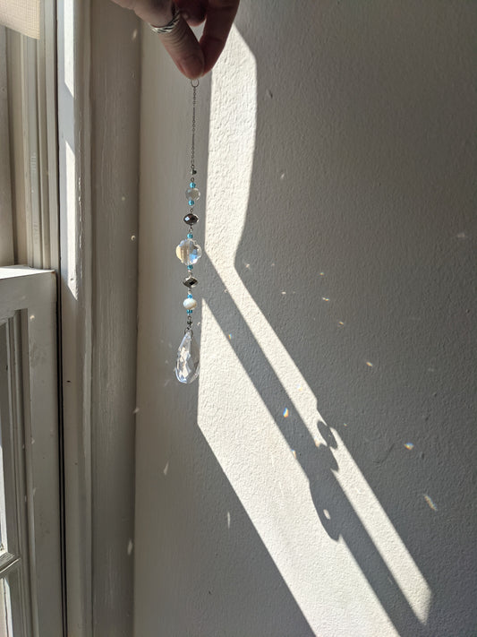 Mini atrapasol de trébol de cristal azul y gris (hecho a pedido)