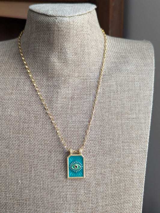 Green Tag Evil Eye Gold Necklace