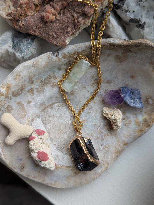 Raw Black Tourmaline Gold Necklace