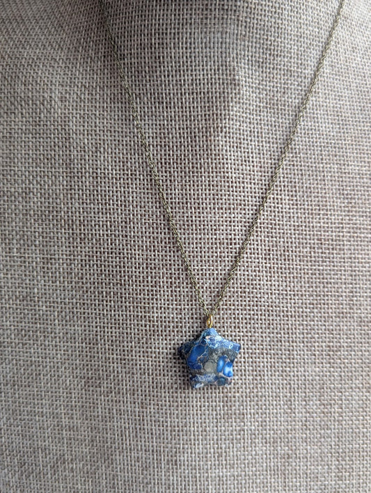 Sea Sediment Jasper Star Brass Necklace (Various Colors Available)