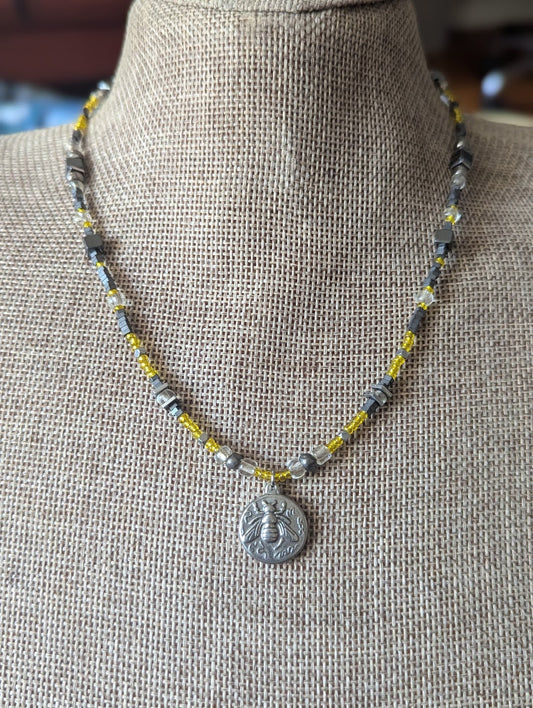 Collar ovalado grande de plata de ley con calcita y cobalto