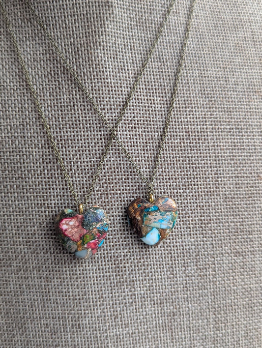 Collar de acero inoxidable dorado con corazón de sedimentos marinos (varios colores disponibles)